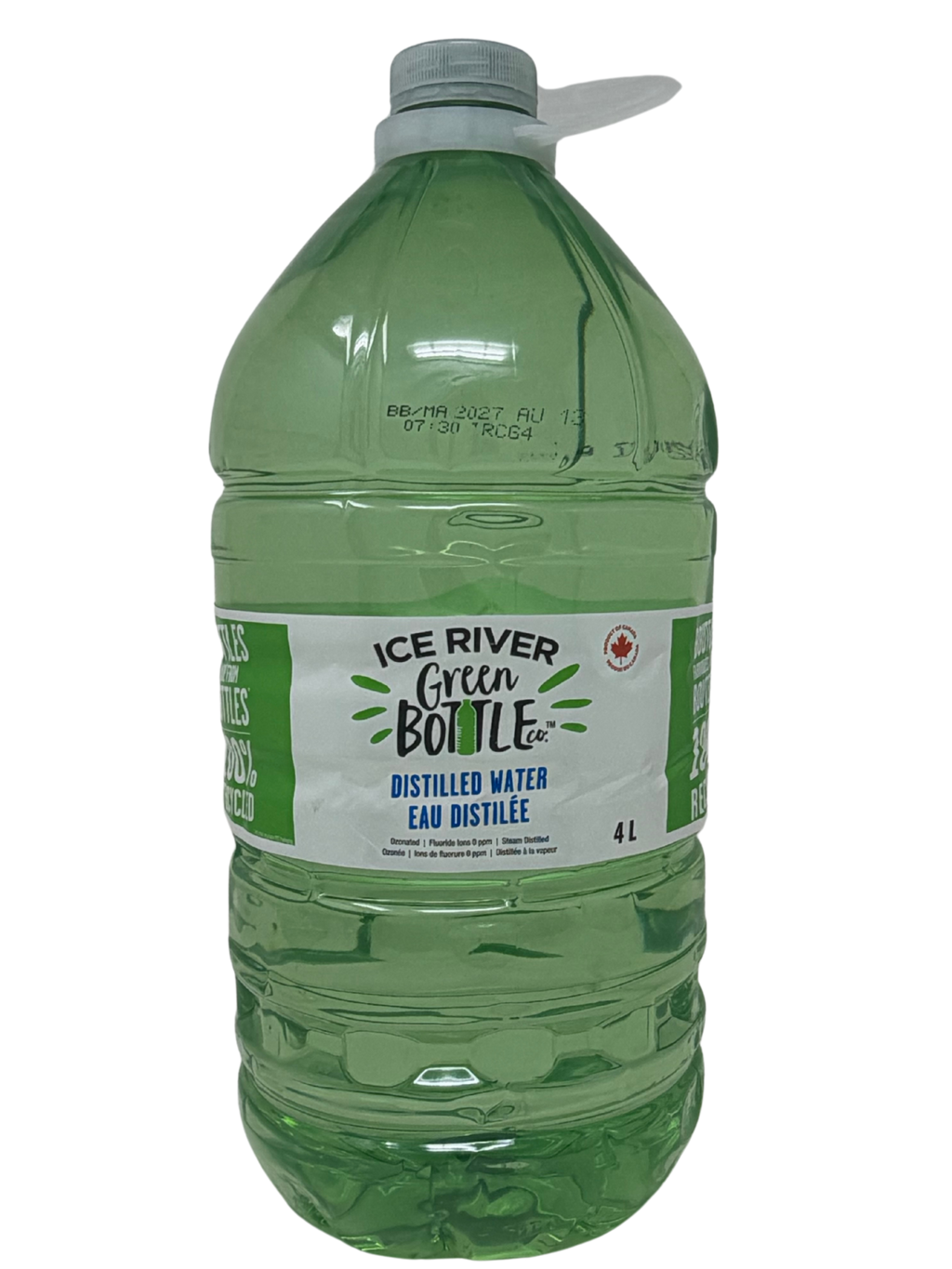 Ice River Green Bottle Distilled Water delivers high-purity water in a convenient 4-litre jug — ideal for use in medical settings, veterinary clinics, homecare, humidifiers, CPAP machines, sterilizers, steam irons, lab instruments, and other equipment requiring distilled (mineral-free) water.